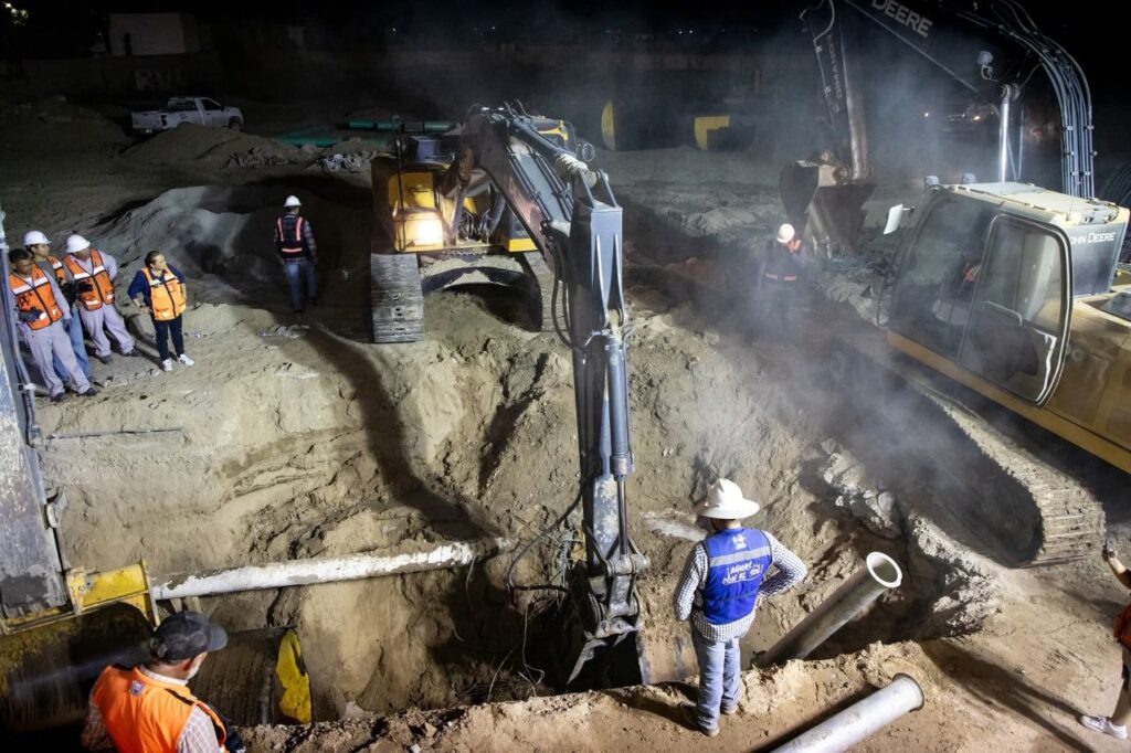 Durante más de 10 horas de labor ininterrumpida, la noche del domingo y la madrugada del lunes, un equipo integrado por más de 60 trabajadores, apoyados con 20 unidades de maquinaria pesada, paramédicos y ambulancias, realizó una obra de alto riesgo que consistió en la sustitución de casi un kilómetro de tubería en una de las zonas más vulnerables de la ciudad.